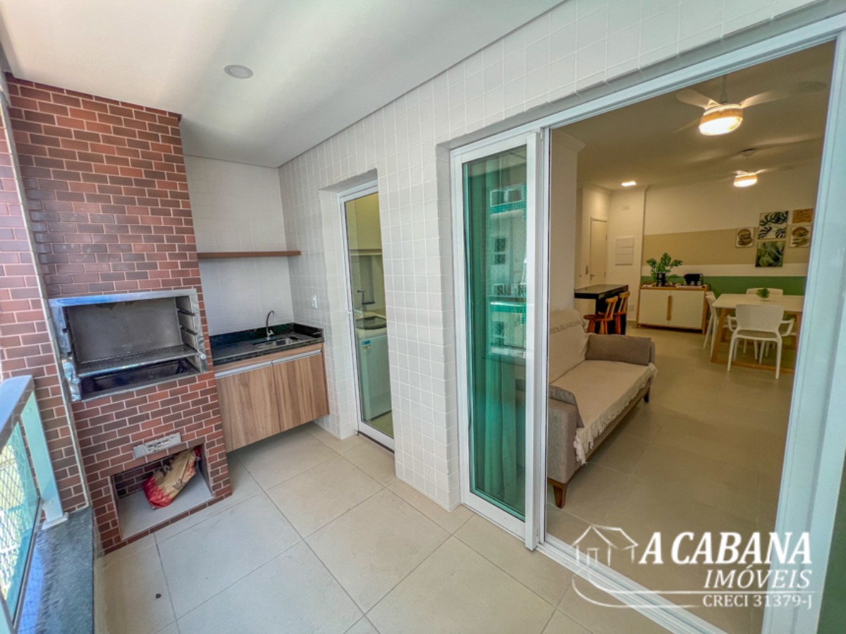 Área Privativa Sala de Estar Sala de Jantar Mobiliado Cozinha Armário de Cozinha Ar Condicionado Área de Serviço Próximo a Praia Garagem Coberta Varanda Gourmet Churrasqueira
